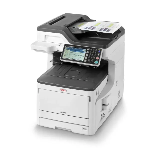OKI MC853dn is a versatile A3 colour multifunction printer combining fast duplex printing, professional LED colour output, and a 7″ touchscreen — perfect for teams needing high-quality results and reliable document workflows.