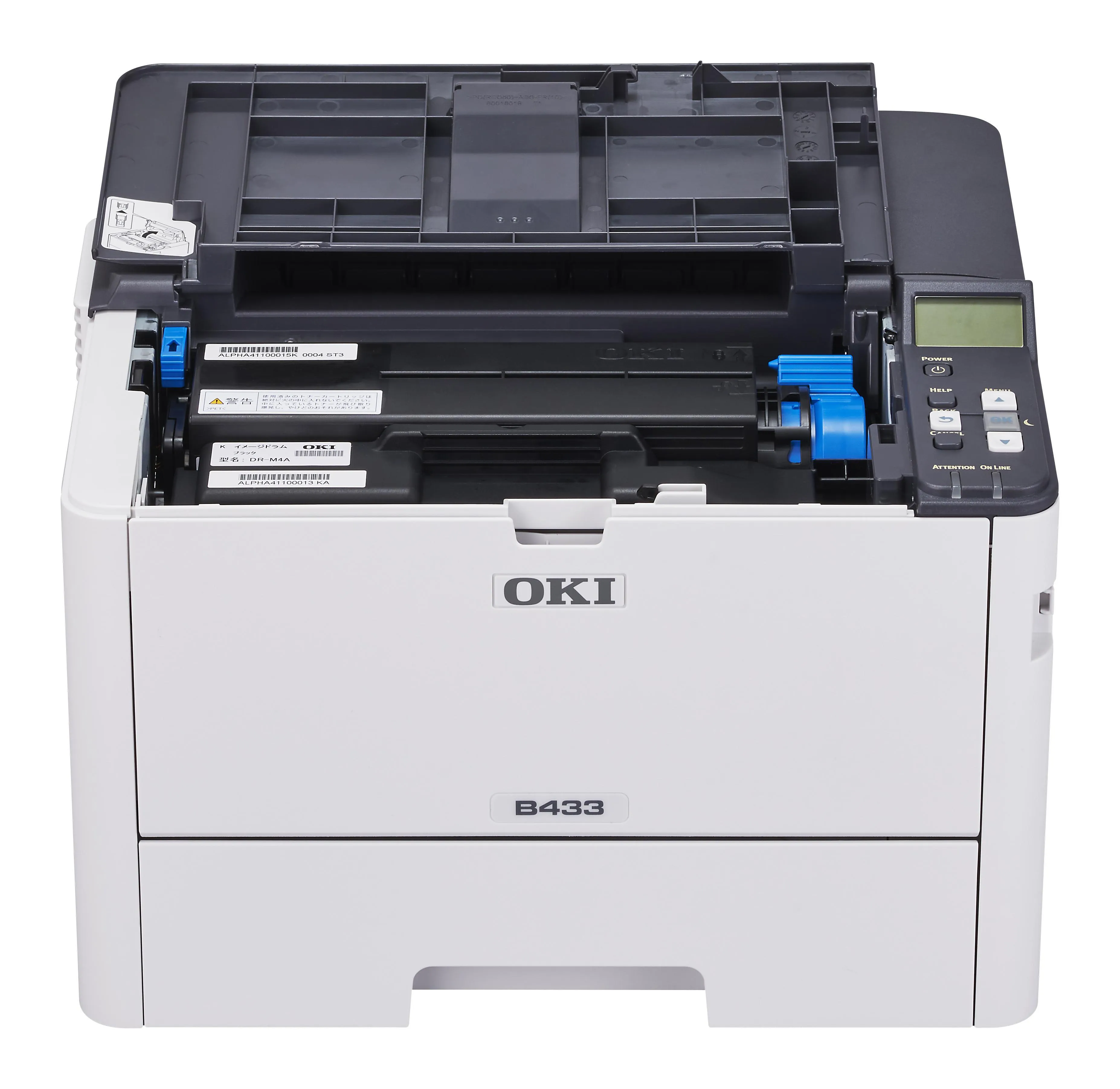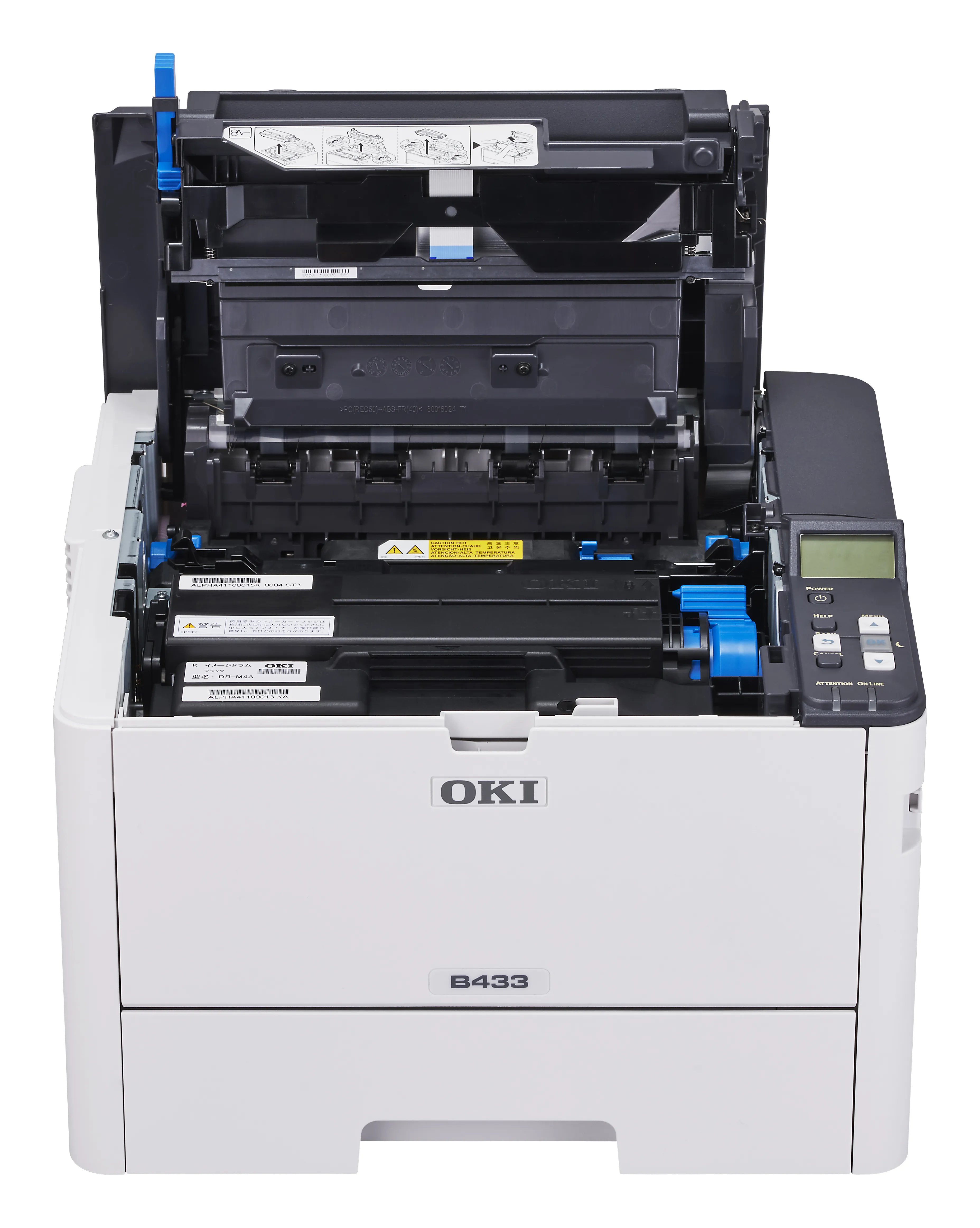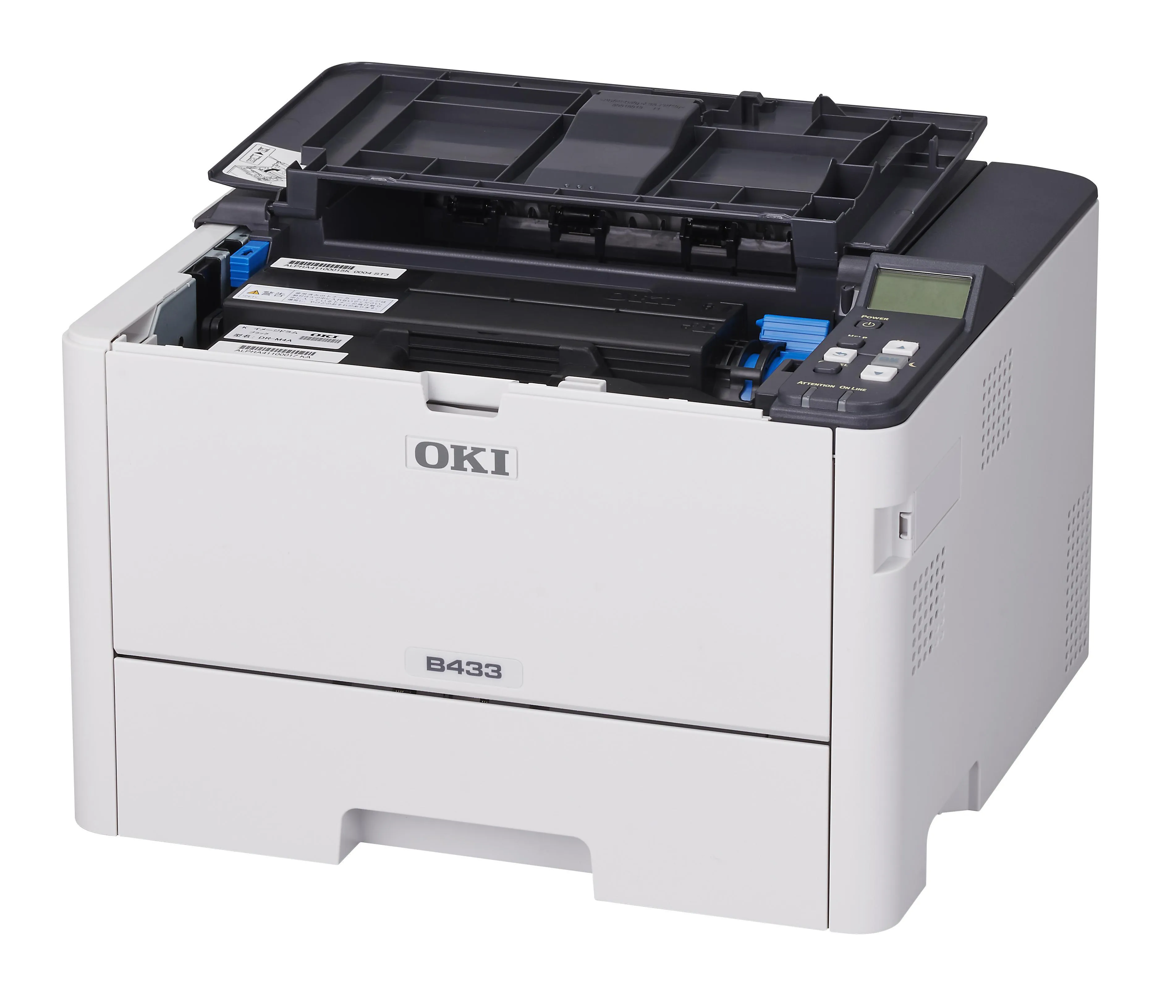 OKI B433 delivers fast 40 ppm mono printing with 1200 × 1200 dpi quality, standard duplex and Gigabit Ethernet. Optional Wi-Fi and a 530-sheet second tray let you scale the device as workloads increase.