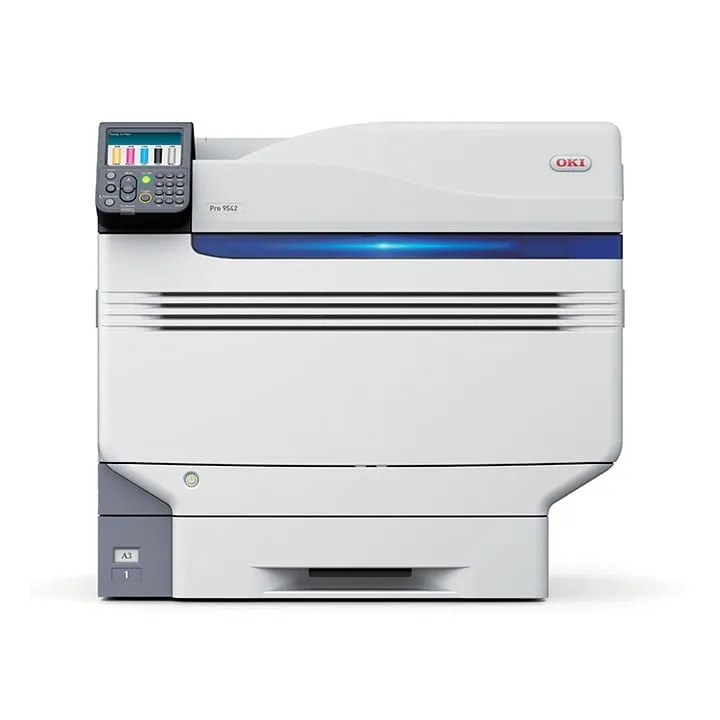 The OKI Pro 9542 is a professional five-colour A3+ printer offering CMYK plus white toner for outstanding graphics, packaging, and proofing. Perfect for short-run, high-impact printing with vibrant colour accuracy and media flexibility.